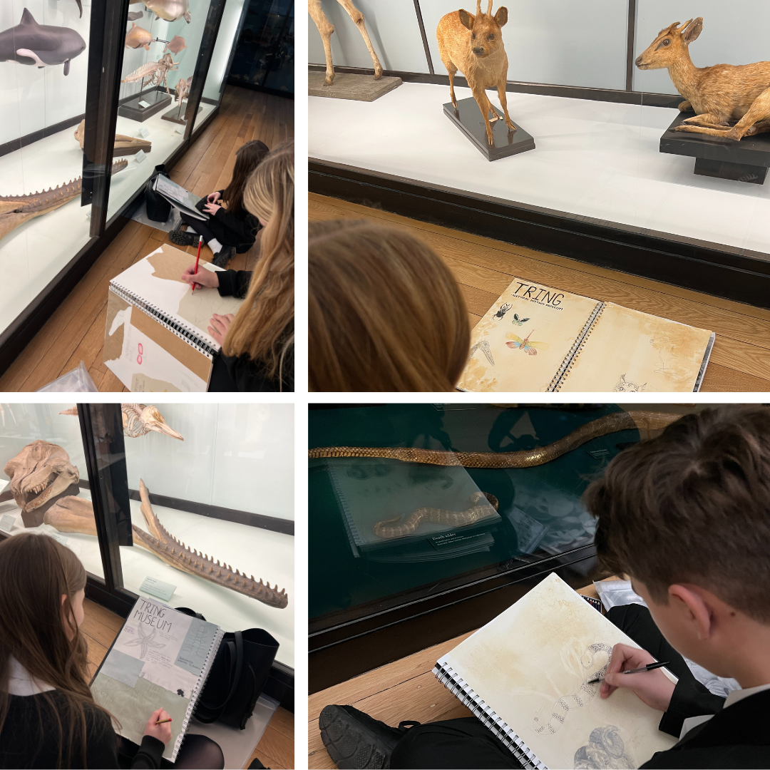 Year 10 students spent a brilliant day at Tring Natural History Museum, filling their sketchbooks with drawings and ideas inspired by the museum’s fascinating collections. Surrounded by everything from butterflies to bears, they created some truly beautiful studies to feed into their coursework.