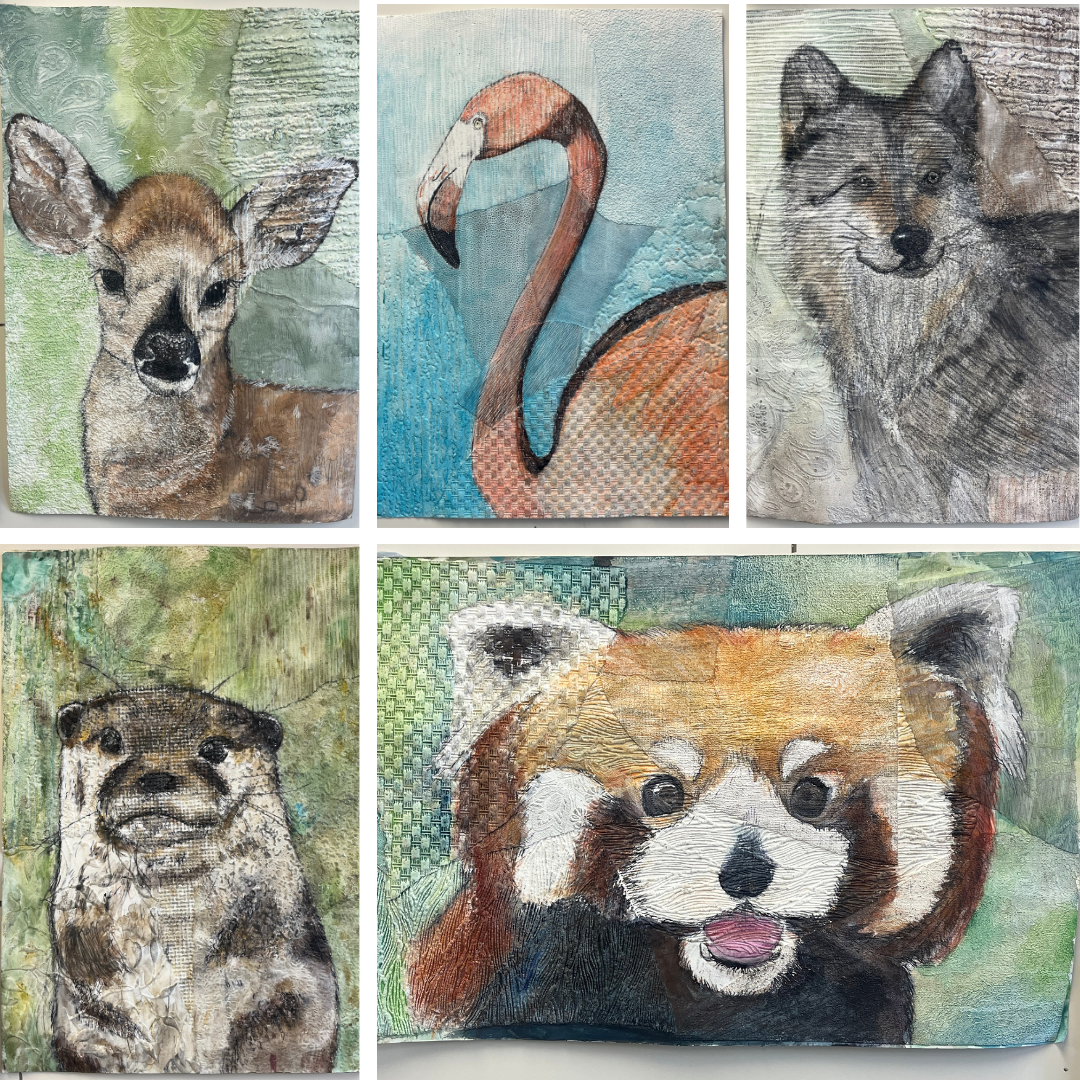 Back in the classroom, Year 10 have also been exploring collage and mixed media under the theme ‘The Natural World’. Their work bursts with texture, pattern and imagination, a real celebration of creativity!