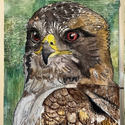 Meanwhile, Year 9 have been busy experimenting with oil pastel monoprints and watercolour, producing vibrant, expressive pieces full of colour and personality.