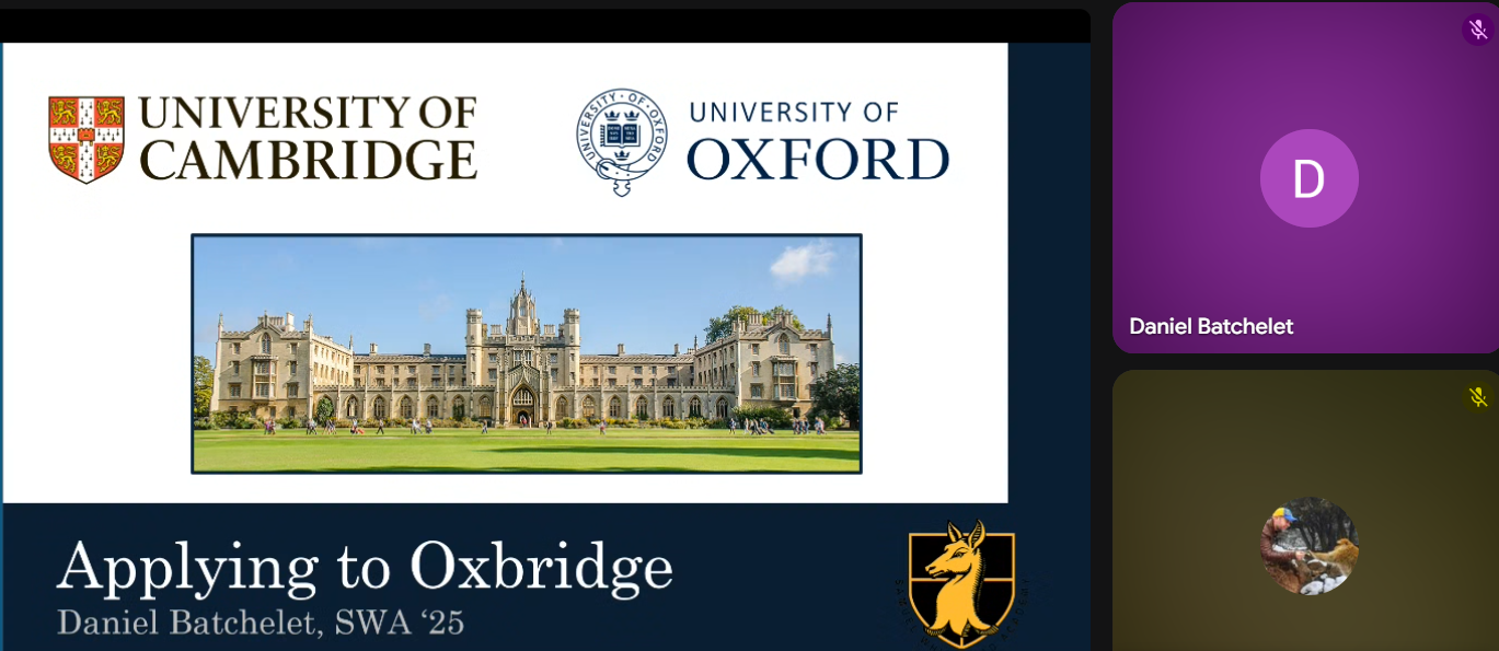 Former SWA student Daniel Batchelet delivered an engaging and thought-provoking online presentation and Q&A session this week for students considering Oxbridge as a future pathway.