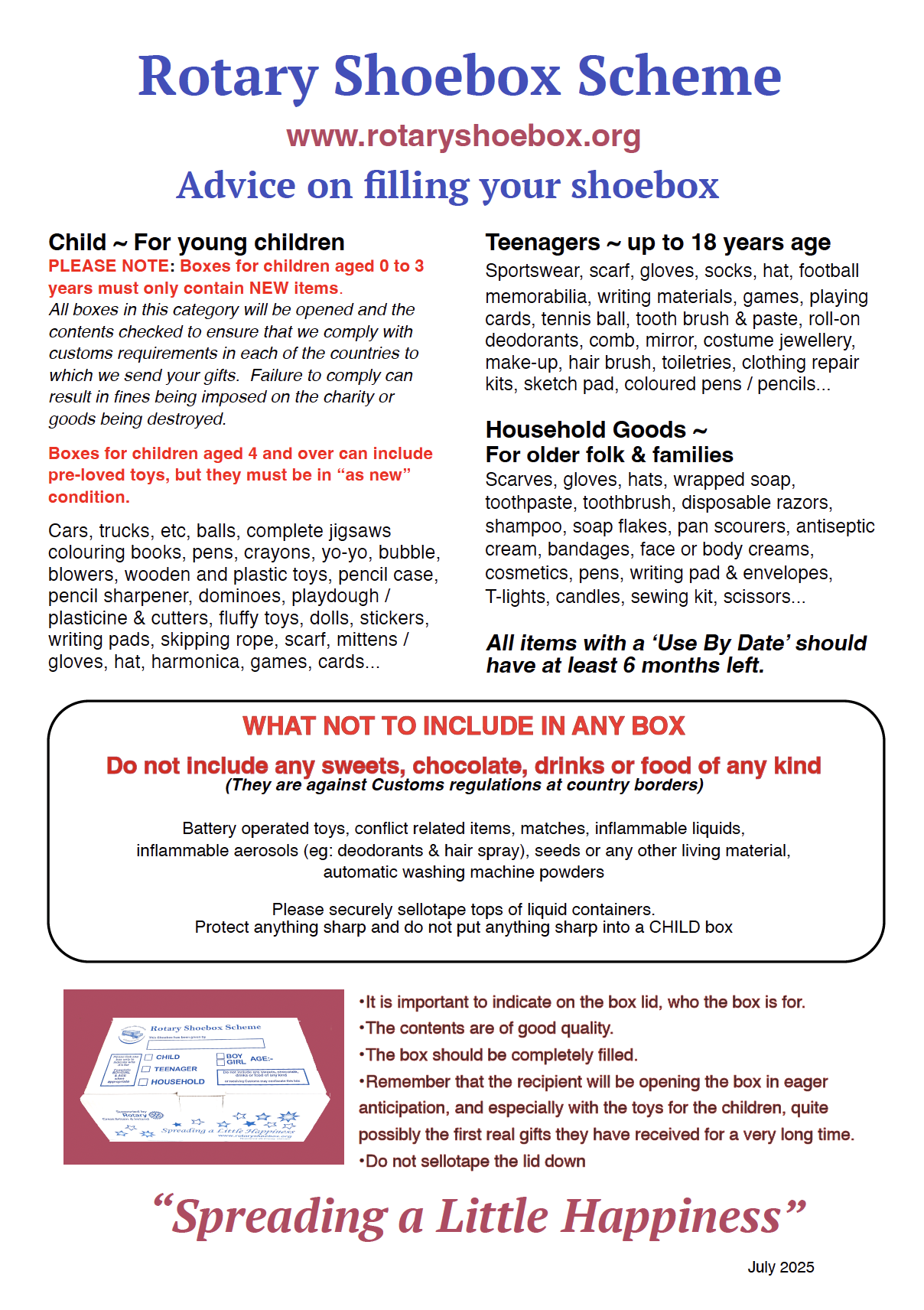 We would really appreciate the support of parents and carers in helping students contribute suitable items for their boxes. A guide to what can be included is available below. Students in Years 9–11 can bring in their items to form time over the coming weeks, and Year 12 representatives will collect them regularly.