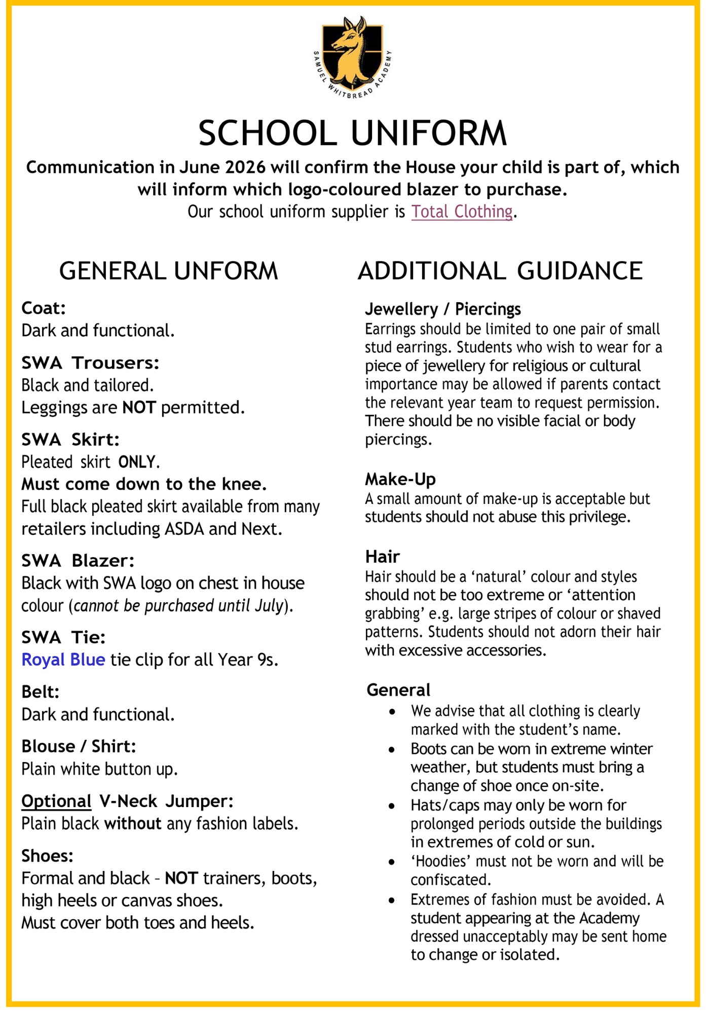 Samuel Whitbread Academy believes that every child should be given the opportunity to be the BEST that they can be, and succeed in their learning. Our school uniform represents our value of equality for all students.