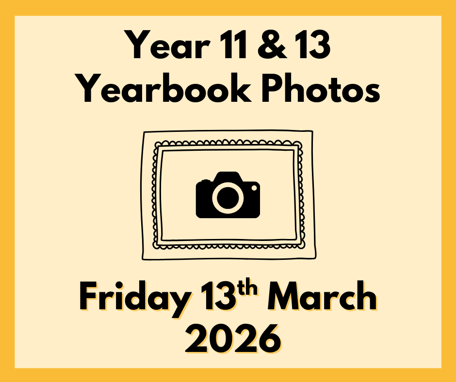 Yearbook photos are taking place on Friday, 13th March. Please wear the correct uniform/dress code and bring your biggest smile!