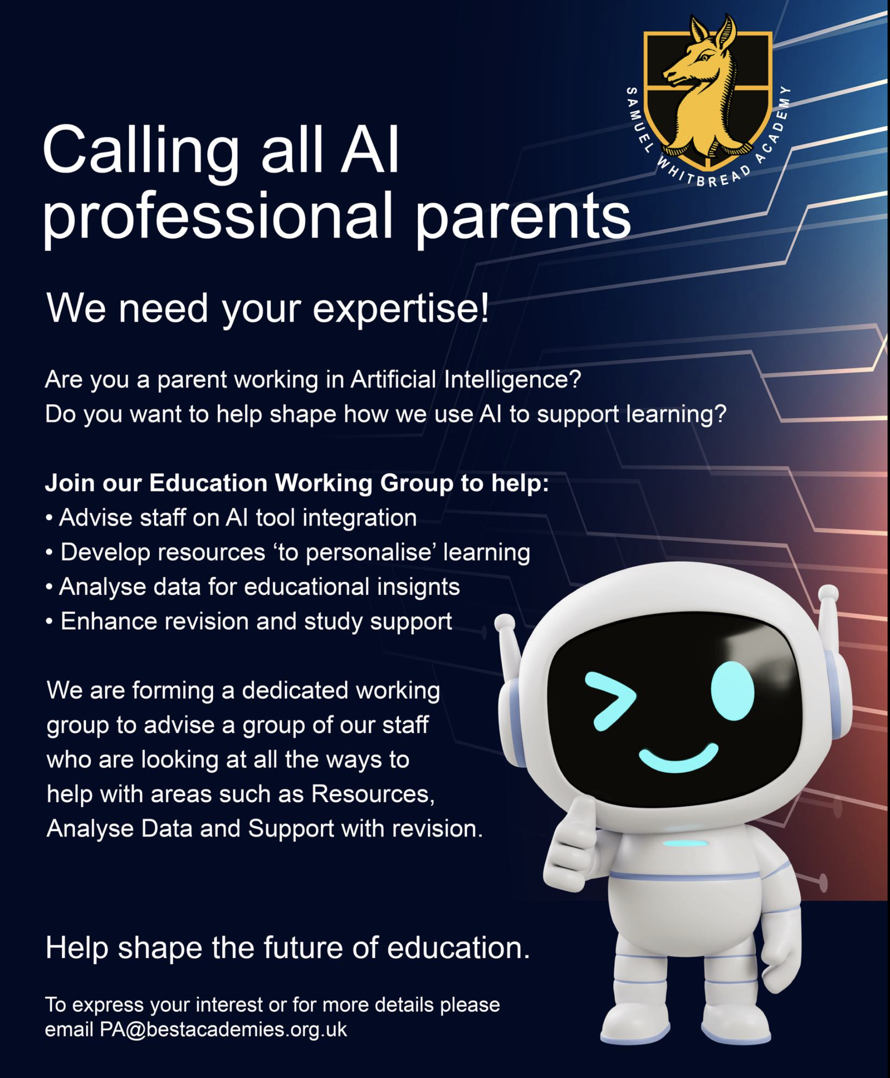 We’re forming an AI Education Working Group and would love to draw on the expertise within our community to help shape the future of learning at SWA.